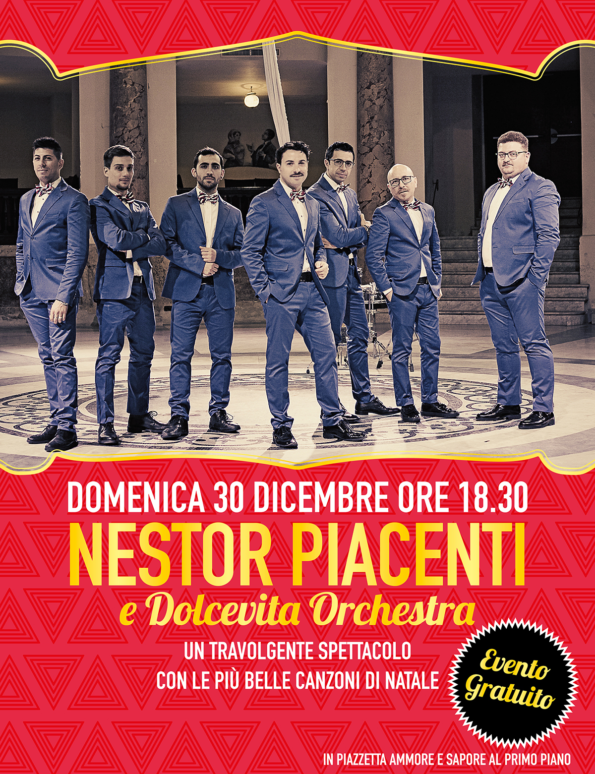 Domenica 30 dicembre a partire dalle ore 18.30, tutti i visitatori della Galleria saranno coinvolti dalle brillanti sonorità di Nestor Piacenti e Dolcevita Orchestra con un grande spettacolo dal vivo gratuito. Lo spettacolo vedrà la band di professionisti impegnata in un repertorio vintage con le più belle canzoni di Natale riproposte in chiave swing.