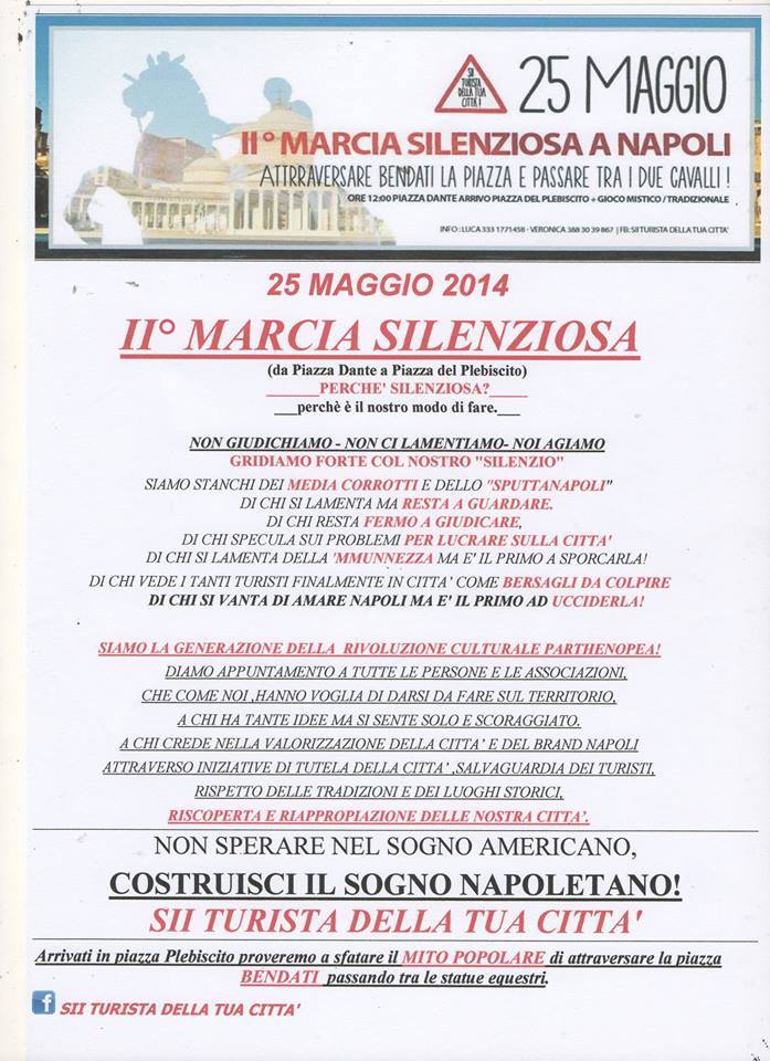 “Non sperare nel sogno Americano, costruisci il sogno Napoletano! “, questo lo slogan dell’Associazione “Sii turista della tua città” la quale ripropone per la seconda volta la marcia silenziosa su Napoli.