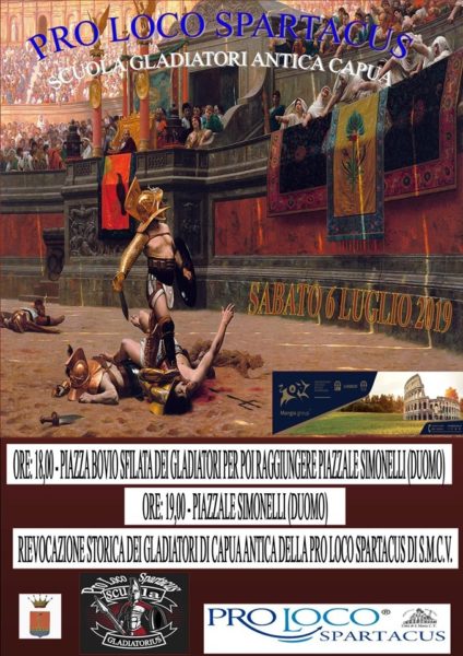 L’evento è stato organizzato dalla Pro Loco Spartacus, insieme alla Scuola Gladiatori Capua Antica e al Comune di Santa Maria Capua Vetere. Il tutto inizierà alle ore 18, presso Piazza Bovio. Da qui partirà la sfilata dei gladiatori che, attraversando le vie del centro storico, arriverà fino in Piazza Simonelli (a pochi passi dal Duomo). In quest’ultimo luogo si svolgerà, intorno alle 19, la rievocazione storica. Così sembrerà di esser tornati ai tempi di Spartaco e dell’Antica Capua, gioia e dolore della Roma repubblicana.