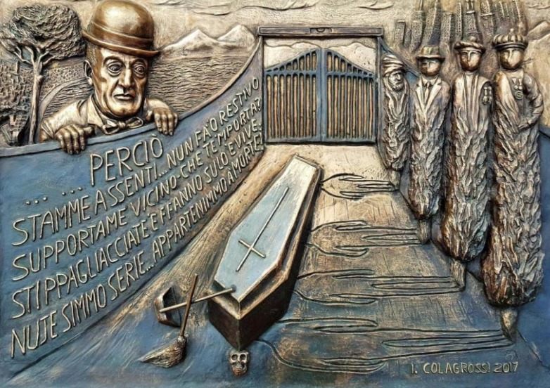 nel realizzarlo, lo stesso travaglio che ha accompagnato il Principe, mio nonno, nel suo percorso esistenziale, e che ha prodotto la poesia ‘A Livella. La scultura di Ignazio rappresenta la poesia non più solo in versi, ma in forma tangibile. Ed è mia volontà collocarla nell’ultima dimora di Antonio, al Cimitero del Pianto, a Napoli. Ringrazio Ignazio affettuosamente”.