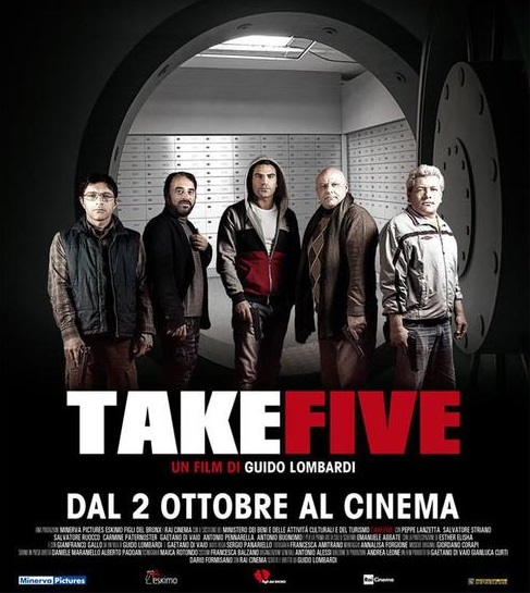 Un ricettatore, un gangster leggendario, un pugile squalificato a vita, un fotografo ex rapinatore e un idraulico con il vizio del gioco saranno i protagonisti di Take Five, un film di Guido Lombardi, distribuito da Microcinema, che sarà al cinema da giovedì 2 ottobre 2014: “Con Take Five ho provato a raccontare la storia di cinque “irregolari”, tutti con un sogno in comune, quello di arricchirsi. Per una forma di riscatto, per sfuggire ai propri fantasmi, o più semplicemente perché ognuno di loro crede che il denaro sia l’unica cosa per la quale valga la pena di vivere. Ma ho voluto raccontare anche cinque solitudini, che solo per pochi giorni si incontrano in nome di un progetto comune. Prevedendo tuttavia che la loro non può che essere un’unione fittizia, che duri il tempo di una rapina. Fino all’epilogo clamoroso ma inevitabile: la perdita del denaro per cui hanno lottato e la perdita dell’innocenza. Girando Take Five ho fatto ricorso, consapevolmente, agli archetipi del film di genere, pur volendo raccontare, a mio modo, una porzione del nostro tempo. Un tempo, una società, dove le persone sono sole, ossessionate, depresse. Dove i soldi, il successo, la fama rappresentano l’unica forma di riscatto da un anonimato altrimenti giudicato insopportabile.”