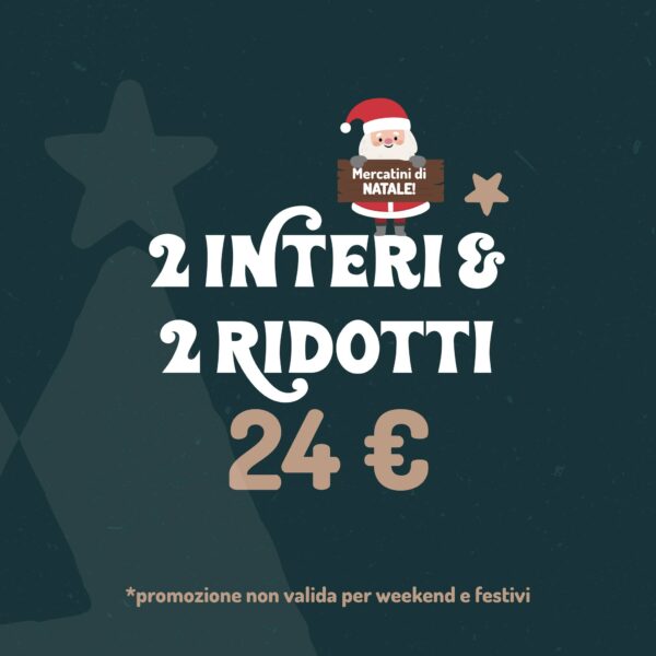 Tra gli eventi dedicati ai bambini, infatti, ci sono la caccia al tesoro, l’incontro con Babbo Natale e, soprattutto, uno spettacolo dell’animazione ogni 30 minuti. I Mercatini, dunque, si pongono come estremamente family friendly e, proprio per questo, è stata pensata una promozione speciale per le famiglie che vorranno concedersi una giornata diversa dal solito e ricca di magia delle feste.