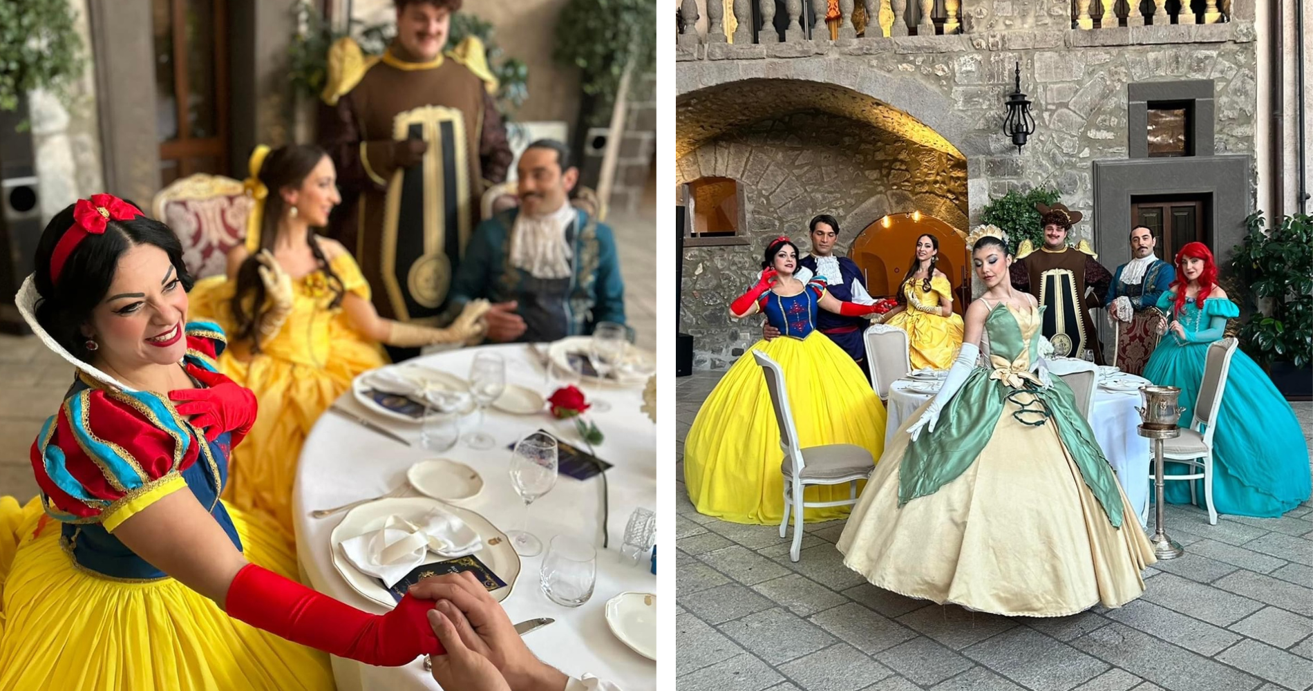 Un gran ciambellano accoglierà gli ospiti annunciando alcune tra le più magiche principesse del reame che sfileranno davanti agli occhi incantati dei presenti e prenderanno posto alla corte proprio insieme a loro. I visitatori si aggireranno tra le sale del Castello, visitandone le meraviglie, ballando con i personaggi delle fiabe e assistendo allo spettacolo live con musica e canzoni.