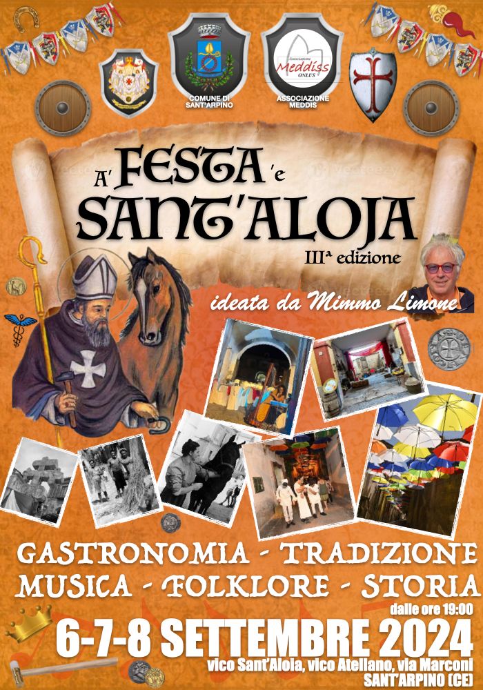 È iniziato il conto alla rovescia per la terza edizione della “Festa di Sant’Aloja”, un evento attesissimo nel Comune di Sant’Arpino, organizzato dall’event planner Mimmo Limone in collaborazione con l’associazione “Meddis” e con il patrocinio del Comune. La manifestazione, che si terrà il 6, 7 e 8 settembre 2024, si preannuncia come uno degli appuntamenti culturali più importanti dell’anno per la comunità locale.