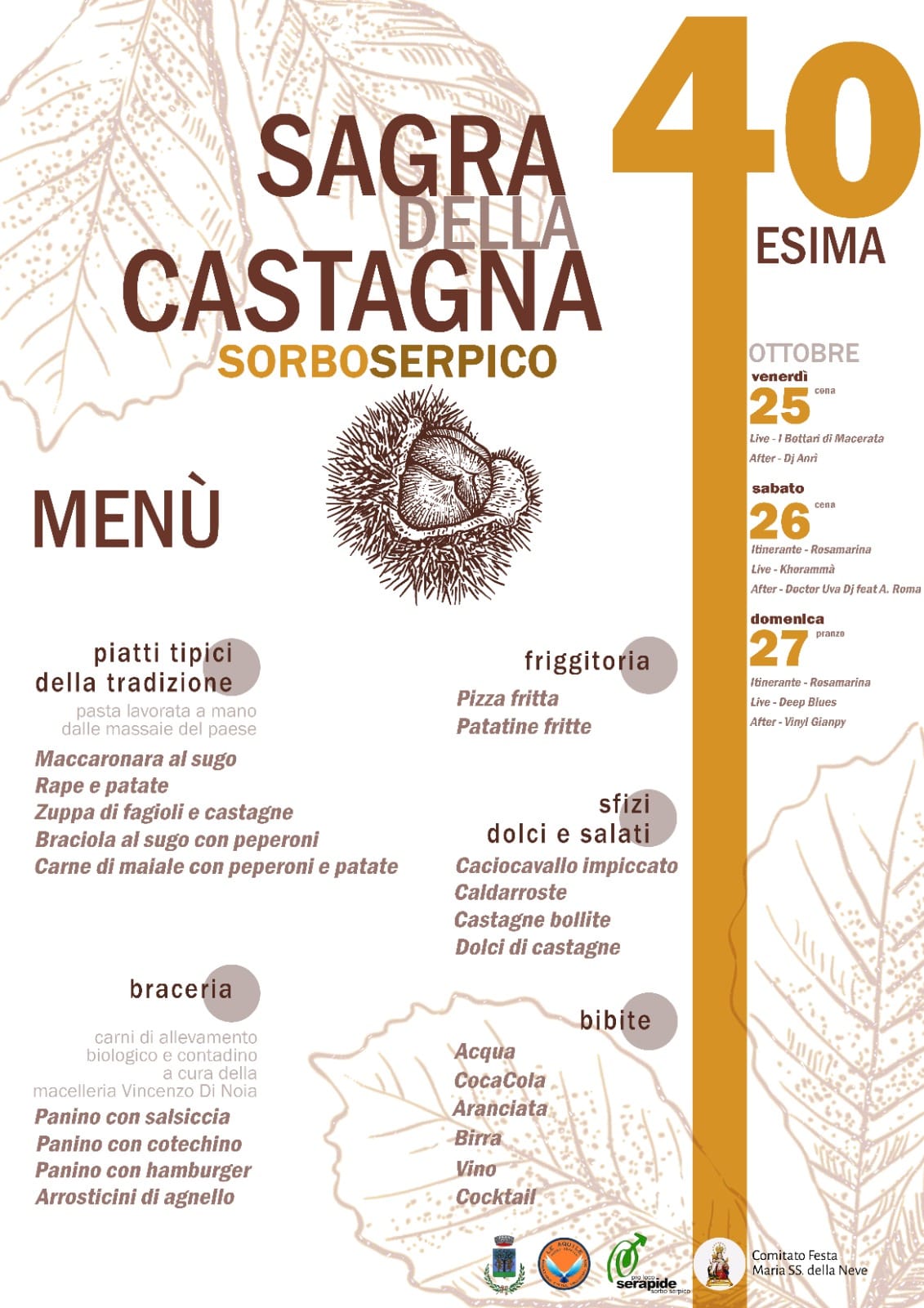 Contatti: pagine Facebook Comitato Festa Maria SS. della Neve, Sagra della Castagna Sorbo Serpico.