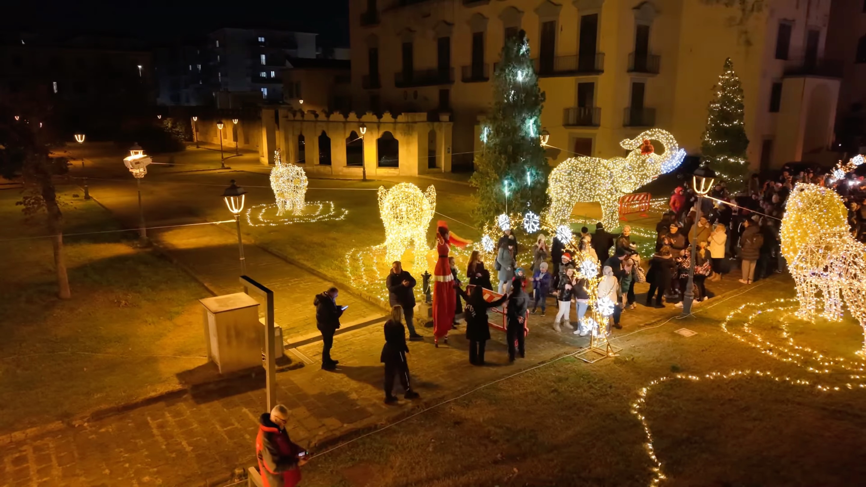 Luminarie di Natale a Portici 2024. Screenshot dal video di Don Dharmasiri Carlo Algamage