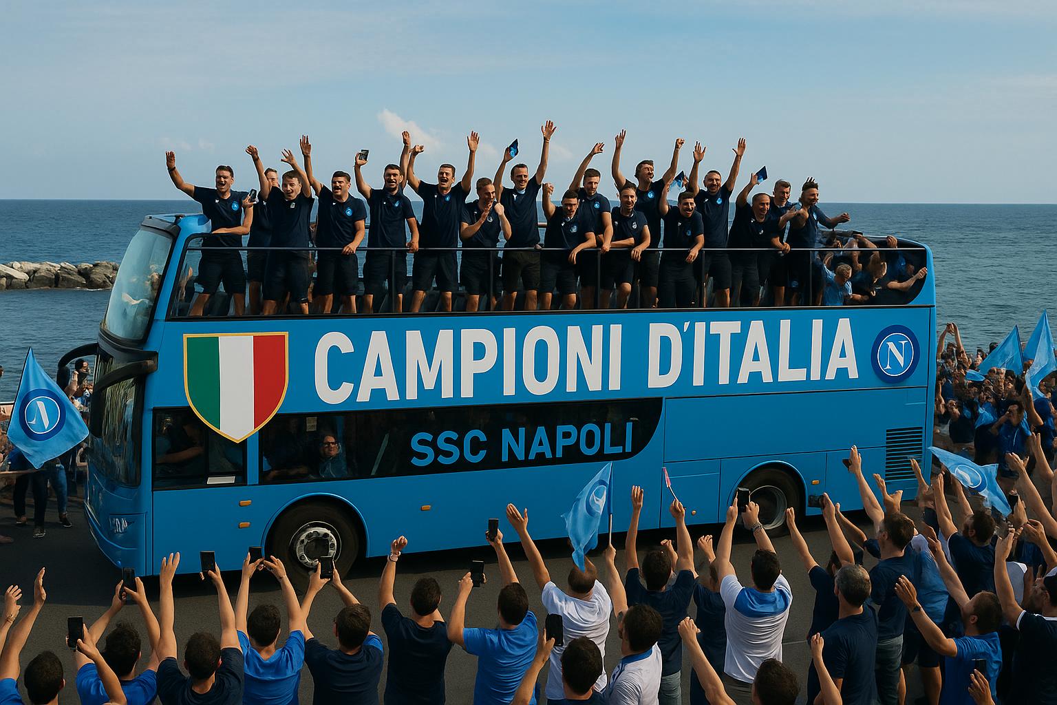 Una serata storica quella del 24 maggio che ha decretato la vittoria dello scudetto da parte del Napoli, da poche ore ufficialmente campione d’Italia: la gioia è esplosa in ogni angolo della città ma soltanto lunedì, 26 maggio, si terrà la festa ufficiale con la sfilata di ben 2 bus scoperti, con a bordo l’intera squadra, che attraverseranno il lungomare.