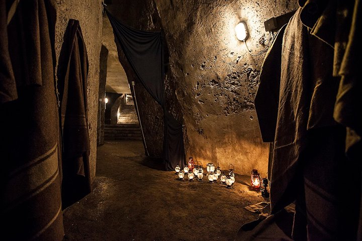 La pièce teatrale si terrà all’interno della Galleria Borbonica ex rifugio civile che, durante i bombardamenti, salvò la vita a milioni di poveri innocenti, così come testimonia l’incisione impressa sulla parete di tufo della gigantesca cattedrale.