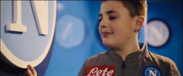 Durante Napoli-Lecce, gara di campionato del San Paolo, è Antonio uno dei bambini che scende in campo mano nella mano con Demme prima del fischio iniziale.