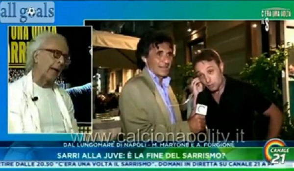 Forgione ieri sera era ospite dello speciale “C’era una volta il Sarrismo” dal ristorante ‘I Re di Napoli’ sul lungomare. Si parlava di Sarri alla Juve, quando Mughini lo ha interrotto commentando una frase scritta in un post da Forgione: “Nessuno però ha chiesto a Sarri come si sente ad essere l’allenatore di una squadra che impoverisce il sistema“.