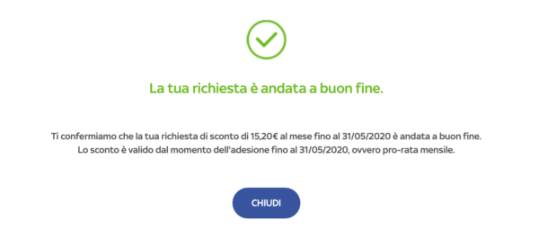 Una volta premuto sul tasto blu, richiedi lo sconto, arriverà un ulteriore messaggio da parte di Sky.
