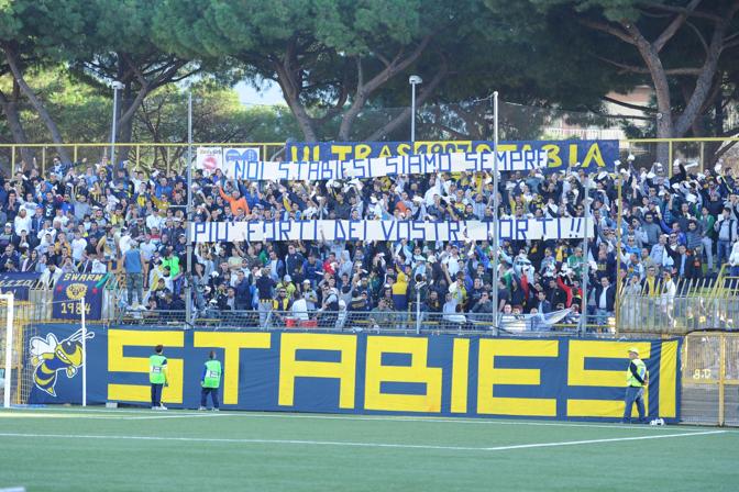 Romeo Menti di Castellammare di Stabia, in scena la partita di Lega Pro tra le vespe e il Matera. Il match si concluderà con un pareggio che poco soddisferà i supporters di casa ancora scottati dalle recenti polemiche per il mancato ripescaggio in Serie B. Succede, però, un fatto piuttosto curioso prima che la partita abbia inizio.