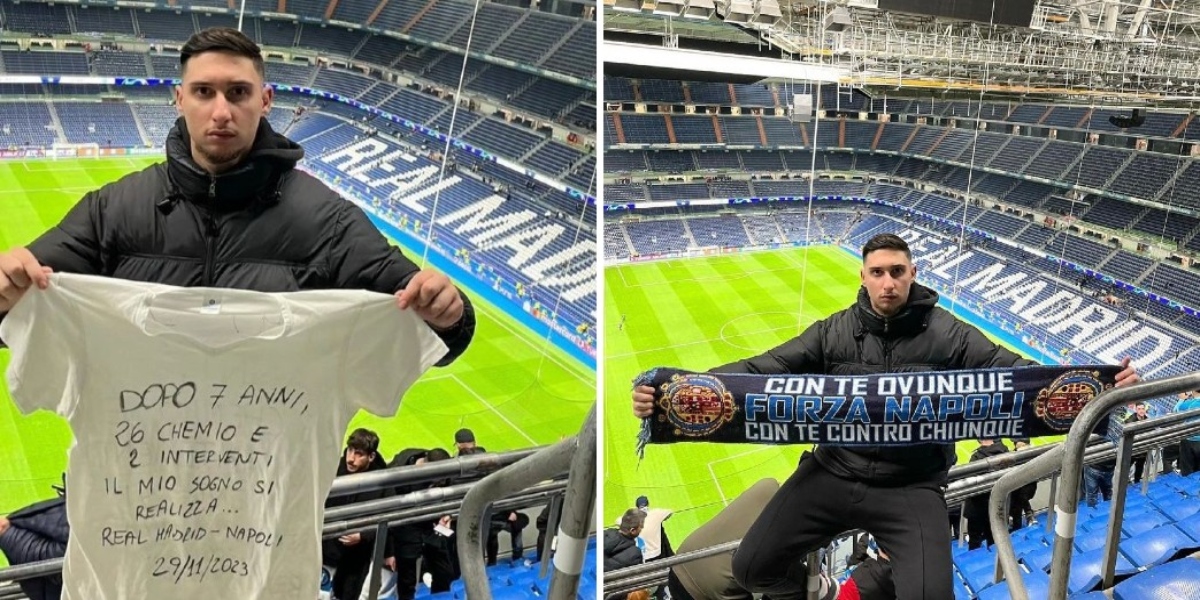 “Mi diagnosticarono il tumore, mi sottoposi a chemio, interventi vari e dunque l’occasione di andare al Bernabeu svanì. Ho pregato tutti i giorni che il Napoli beccasse il Real in Champions… e dopo 7 lunghi anni eccoci qui. Sto scrivendo queste due righe guardando il campo, consapevole di non riuscire mai a rendere l’idea di quello che sto provando. Ho cambiato 4 treni, 2 metro, 1 aereo e 37278272 km fatti a piedi, e lo rifarei altre mille volte. Non so più che scrivere, voglio solo dire ‘Grazie Dio’ per tutto questo. Real Madrid – Napoli non è più un sogno. È tutta realtà”.