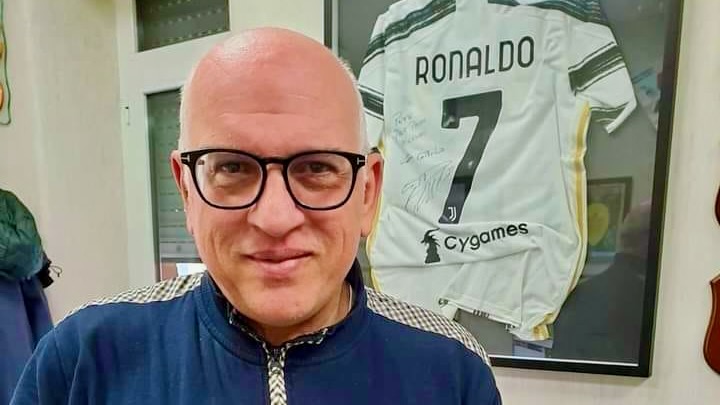 Il professor Paolo Ascierto con alle spalle una maglia di Ronaldo della Juventus