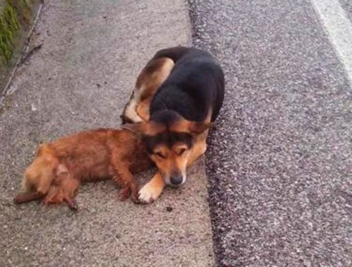 Lì dove la macchina l’aveva falciata, Angelo le stava accanto per proteggere e non lasciare sola Dasy, una piccola cagnolina randagia di cui se ne era perdutamente innamorato. Una vita, quella di Angelo, costellata di numerose sofferenze: era stato abbandonato dal padrone e poi ha perso la sua compagna uccisa da un pirata della strada.