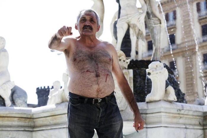 I lavoratori protestano per il mancato pagamento degli stipendi arretrati. Come riferisce Il Mattino, durante questa manifestazione uno di loro si è recato in piazza ed è salito sulla fontana minacciando di autolesionarsi. Così ha iniziato a tagliarsi con una lama in più punti del corpo, provocandosi ferite sanguinanti, in assenza di risposte rassicuranti da parte delle autorità.