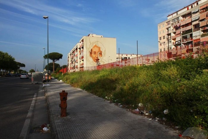 R. “Il legame lo cerco nella realizzazione dell’opera; non di rado il volto che dipingo è quello di una persona del posto. Cerco sempre di comprendere il contesto in cui sono calato e adattarmi al luogo in cui mi trovo“.
