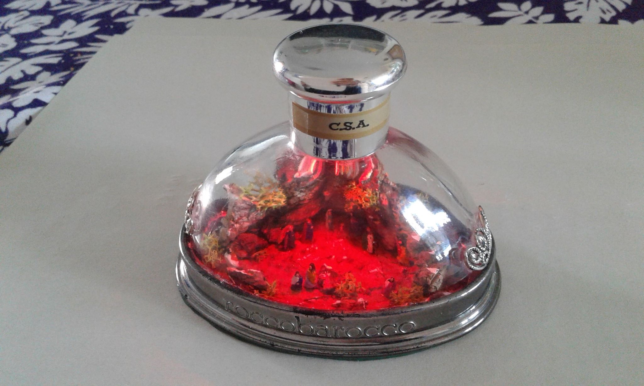 La più bella è sempre l’ultima creata, ma quella che ci ha dato più soddisfazione è quella creata in una bottiglia di profumo Rocco Barocco. Piccolissima e bellissima, ha la sua particolarità di accendersi alternando colori diversi da una piccola lampadina led girando il cappuccio della boccetta.