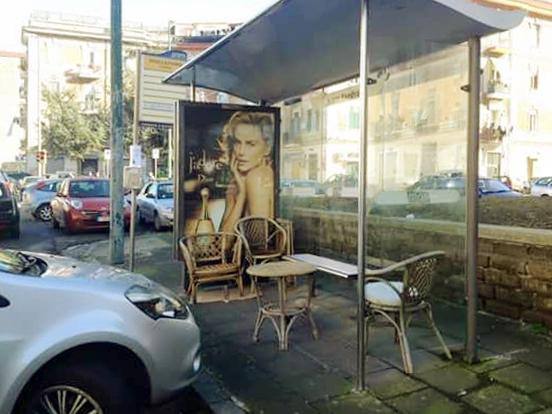 I napoletani trovano rimedio proprio a tutto. Dopo la panchina fai da te installata in un vicolo del quartiere di San Domenico Maggiore per i mariti stanchi che sono costretti a fare shopping con le proprie mogli o fidanzate, speranzose di trovare l’oggetto tanto desiderato in saldo, arriva anche una soluzione per tutti coloro che attendono l’arrivo dei mezzi pubblici.