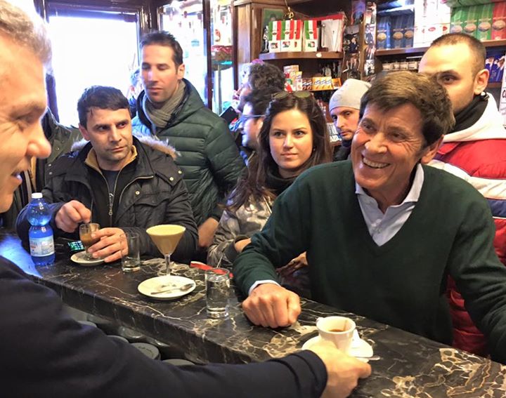 Gianni, che ha, ormai, la nomea di essere sempre pronto a pubblicare foto del suo quotidiano su Facebook, non si è smentito ed ha “postato” un nuovo scatto del suo giro per la nostra città: questa volta il cantante è stato immortalato in nello storico bar “dal Professore” a piazza Trieste e Trento mentre sorseggiava un caffè attorniato dai fans. Immancabile anche il commento di Morandi: “Prima del secondo concerto, un caffè dal Professore, a piazza Trieste e Trento. O’ cafe’ sulo a Napule ‘o sanno fa’!“. Certo, i puristi della grammatica napoletana potrebbero notare alcuni errori grammaticali, ma a Gianni possiamo perdonarli.