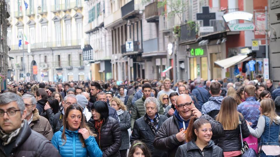 Un’onda umana avvolgente, senza fine. Mi sono immerso, mescolato, confuso tra la gente. Ho visto persone serene, sorridenti, finanche felici. Che sta accadendo a Napoli. L’umanità e’ preoccupata, e’ in pericolo. Ognuno ha numerosi problemi. Anche in città le ferite sono tante. I guai molti. Ma qui a Napoli forse si sta provando a sovvertire l’ordine dei fattori della vita. E la vita è innanzitutto un dono. A Napoli al dono più grande, senza prezzo, si prova a non rispondere più con il denaro, ma in primo luogo con l’amore. Ecco forse si sta costruendo un nuovo benessere; sta nascendo la civiltà dell’amore. L’umanità prima di tutto. Il cuore grande che dona prima di ricevere. Le persone prima del denaro. Lo sguardo negli occhi, prima di girarsi senza pensare dall’altra parte. Qui a Napoli stiamo provando a tornare alle origini della vita. Essere prima ancora che Avere. Ed il dono più grande stiamo provando a non dimenticarlo mai anche quando tutto sembra scorrere in un fiume apparentemente inarrestabile di vacuità. Immergetevi tra le persone, tutte uguali e diverse, tutti abitanti dello stesso mondo. Un abbraccio, una carezza, una tenerezza. Accorciamo le distanze, ci accorgeremo che i corpi trasmettono energie. Siamo tutti passeggeri di un viaggio donato, che materialmente avrà fine, ma rimarrà in eterno la quantità e la qualità di amore che avremmo lasciato. Non consumiamolo il dono, amiamolo in profondità.