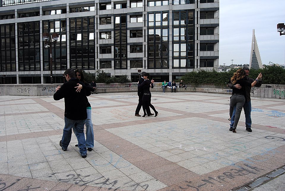 Così da quattro anni al Centro Direzionale ogni giovedì dalle 13.00 alle 14.30 i lavoratori della zona scendono in “piazza” per fare quattro passi di tango. La zona si trasforma per poche ore in una “milonga” dove molti vanno a guardare ma altri si cimentano nel ballo più romantico del mondo.