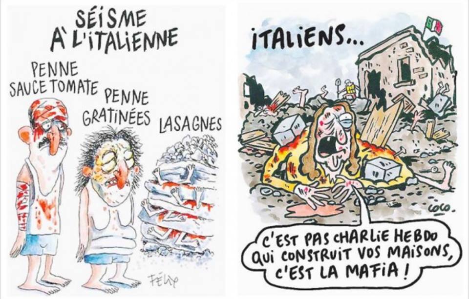 Nel momento in cui si verificano tragedie come quella del terremoto che ha colpito il Centro Italia, oltre al cordoglio e alla disperazione, subentra la rabbia nei confronti di chi preferisce fare humor nero. E’ il caso di Charlie Hebdo che, a pochi giorni dal terremoto, pubblicò delle vignette in cui si faceva beffe degli italiani rimasti uccisi dal sisma. C’è chi ha difeso il giornale, che da sempre fa questo genere di satira politicamente scorretta e volutamente sopra le righe. Ma c’è anche chi non ha apprezzato affatto le vignette proposte dal giornale satirico, al punto che si è arrivati alla battaglia per vie legali.