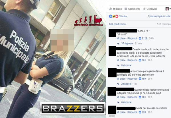 La nota pagina “Sesso droga e pastorizia” ha postato una foto di una vigilessa napoletana, accompagnata dalla scritta “Brazzers”, noto sito porno. I commenti sessisti, manco a dirlo, si sono sprecati: “Al concorso per agenti ottenne il punteggio più alto nella prova orale” o “Multa per eccesso di erezioni“. Il corpo della Polizia Municipale di Napoli è subito accorso in difesa della vigilessa, alla quale è stato “rubato” uno scatto non autorizzato, mentre era intenta a svolgere il proprio lavoro in via Onofrio Fragnito, nel Rione Alto di Napoli. Denuncia così, con un comunicato riportato da Ilmattino.it, il capo delegazione trattante Csa Roberta Stella questa vicenda: “Segnaliamo un episodio gravissimo che lede l’intero Corpo della Polizia Municipale e in particolare la dignità degli agenti donna“.