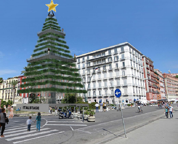 Napoli – E’ da settembre che il Comune di Napoli sta vagliando il progetto di Italstage di ergere, durante tutto il periodo natalizio, una colossale struttura a forma di albero di Natale al centro della Rotonda Diaz. Dopo alcuni problemi burocratici che avevano impedito la conferma del progetto, ieri è stato finalmente deciso che “N’Albero”, questo il nome della rivoluzionaria struttura, si farà.