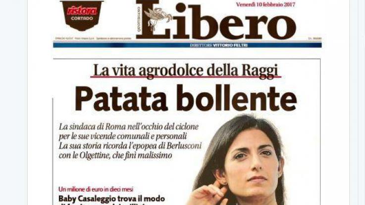 Bufera su Libero, il quotidiano diretto da Vittorio Feltri che questa mattina titola: “Patata bollente: la vita agrodolce della Raggi” un articolo sul sindaco di Roma, “nell’occhio del ciclone per le sue vicende comunali e personali. La sua storia – si legge sulla prima pagina del giornale – ricorda l’epopea di Berlusconi con le Olgettine che finì malissimo”.