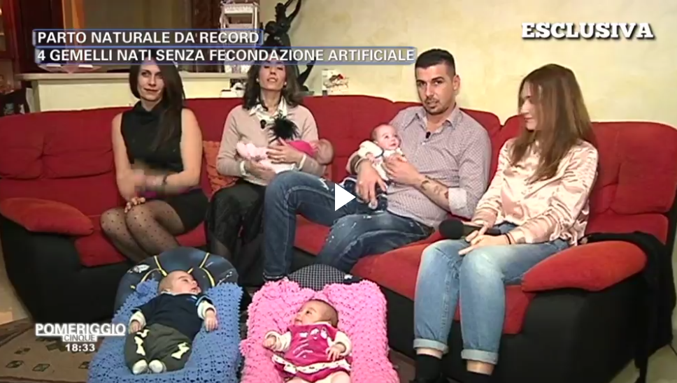Avellino. Una famiglia campana da record ospite da Barbara D’Urso. Al programma Pomeriggio Cinque la storia della nascita di 4 gemelli senza inseminazione artificiale: in studio i piccoli Ilenia, Ginevra, Nicole ed Eligio insieme a mamma Francesca e papà Francesco di San Nicola Baronia, nell’avellinese.