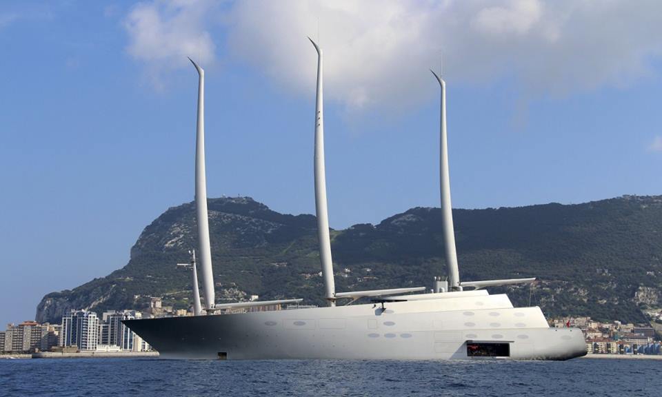 Sailing Yacht vale circa 460 milioni di dollari, è stato costruito nel 2012 in Germania ed è stato varato in primavera a Gibilterra. Con i suoi 8 ponti ha un’area in vetro per l’osservazione sottomarina e una zona per l’atterraggio degli elicotteri. Caratteristica principale sono i tre alberi costruiti in fibra di carbonio super leggero e ad alta resistenza, il più alto dei quali raggiunge 91 metri. L’equipaggio è composto “solo” da 54 persone.