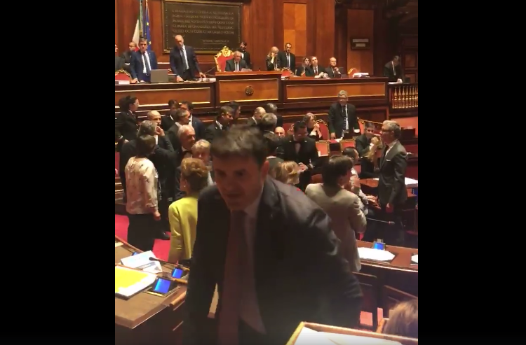 Una vera è propria guerriglia quella che si è scatenata a Palazzo Madama durante la discussione sulla legge dello Ius Soli. Veementi sono state le reazioni dell’opposizione, in particolare la Lega Nord, che ha dato il via ad una vera e propria torcida, fatta di calci, spintoni ed insulti.