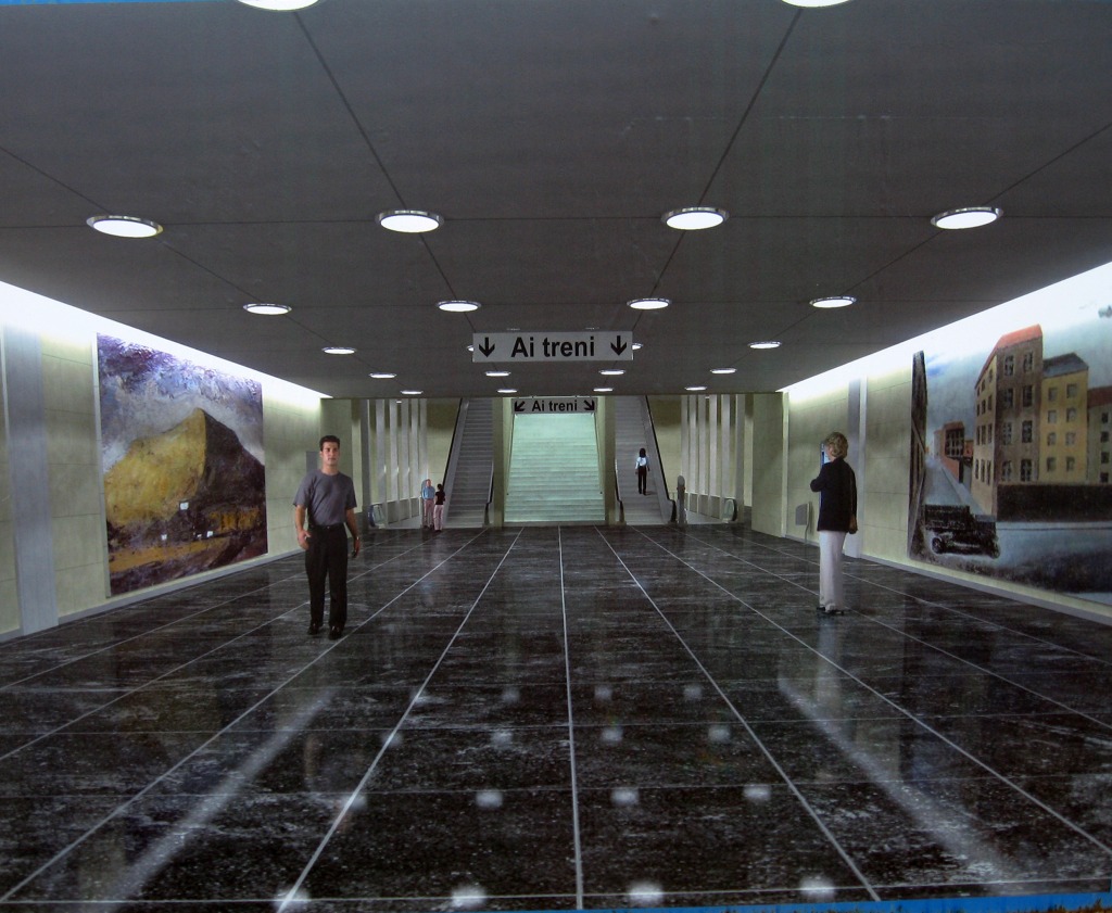 Il progetto è dell’architetto tedesco Hans Kolloff e prevede una stazione in perfetta armonia con lo stile liberty della Villa Comunale. Come si può vedere dal rendering la stazione è profonda 26 metri e si trova sotto il livello del mare, in acqua, sull’antica spiaggia. Ora è in corso il montaggio dei binari, che da Mergellina a Municipio sono lunghi 3 chilometri e 300.
