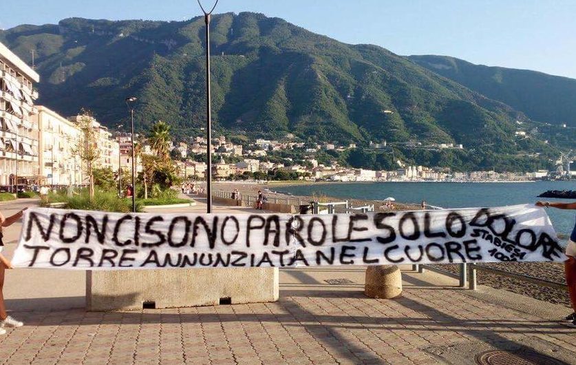 Oggi, invece, vi parliamo di altri striscioni, quelli sventolati a Castellammare di Stabia, che hanno ancora come oggetto l’affetto e la solidarietà per una città che sta soffrendo e che continua a piangere le sue innocenti vittime.