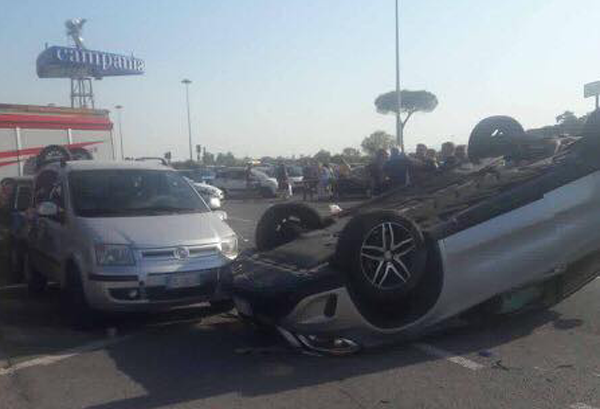 Pochi istanti fa si è verificato un incidente nel Centro Commerciale Campania di Marcianise. Due auto, infatti, si sono ribaltate nel parcheggio del centro commerciale: una Lancia Y di colore bianco ed una Mercedes di colore grigio.