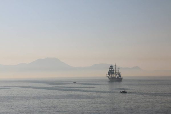 La Vespucci è arrivata a Napoli in occasione degli Stati Generali del Mare e ha omaggiato la città partenopea al largo del lungomare Caracciolo, all’altezza della Rotonda Diaz.