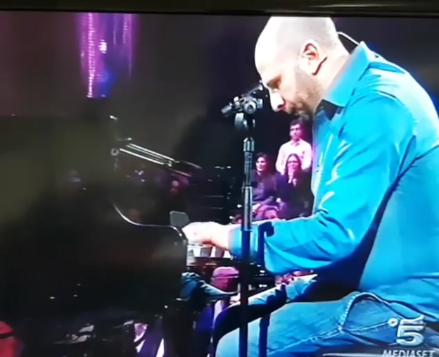 Ha chiuso il suo spettacolo con un omaggio a Pino Daniele e questa volta lasciando l’umorismo da parte, regalando una versione a pianoforte di Alleria, che ha commosso tutti.