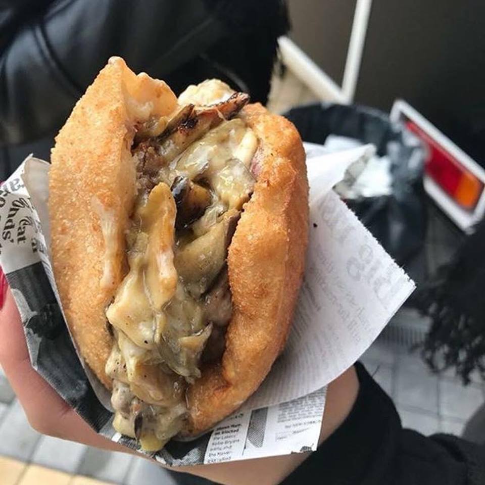 Il panino vuole essere un omaggio ai cinque quartieri di Napoli. Si parte da “Forcella” con maialino nero, parmigiana bianca e provola, al “Vomero” con hamburger di angus, insalata e pomodori. Poi si passa per “Quartieri Spagnoli” con patanegra, zucchine, provola, mascarpone, e il “Rione Sanità” farcito con ragù napoletano, friarielli e provola, fino al “Posillipo” con all’interno manzetta prussiana, provola e melanzane a funghetto.