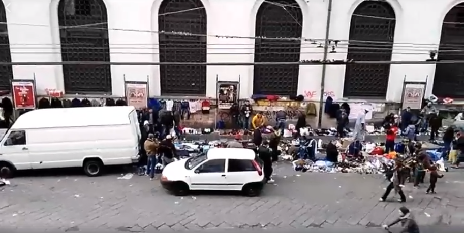Fa pensare molto, un video pubblicato su facebook che ritrae un volto malfamato e degradante di quelle zone di Napoli che sembrano essere state dimenticate dalle istituzioni. Nel video si evidenzia la presenza di un suk abusivo, un mercatino di merce proveniente da cassonetti e rifiuti. Così i pedoni che camminano per quei marciapiedi si ritrovano a dover evitare di calpestare la merce che rende impossibile il transito.