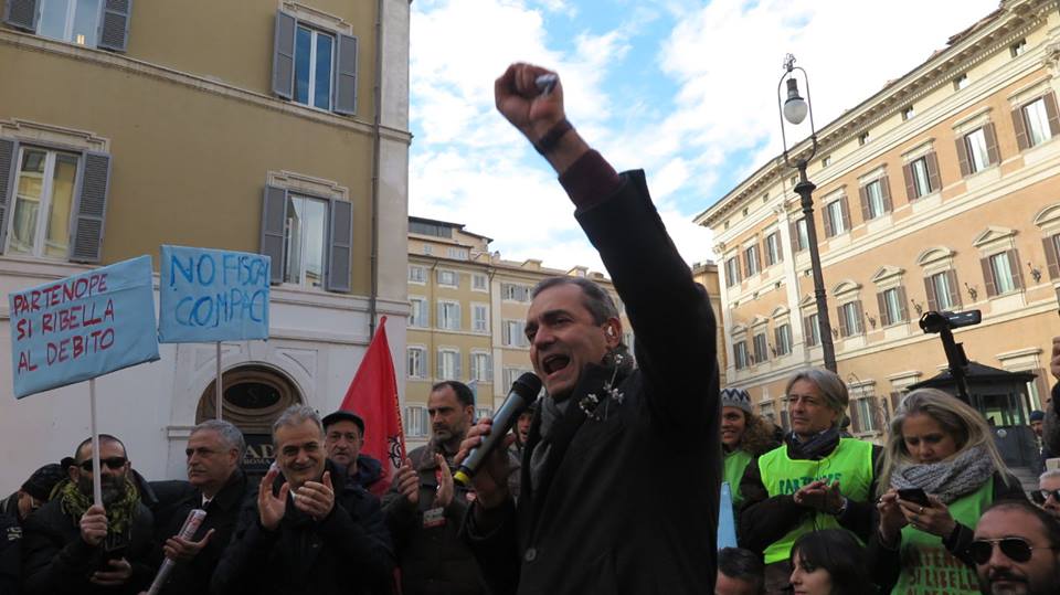 Nonostante le difficoltà incontrate, il sindaco di Napoli Luigi de Magistris, con i manifestanti sono riusciti a giungere a Roma per la marcia contro il debito che non è del comune e che comunque impedisce il mandato elettorale visto che hanno la cassa pignorata e bloccata.