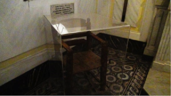 Qui c’è nascosta una sedia in legno, dove era solito sedersi per pregare. Secondo la leggenda, infatti, fu proprio qui che si verificò il cosiddetto “miracolo delle albicocche” attribuito al santo.