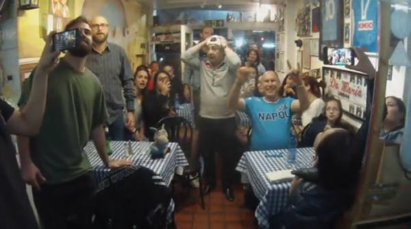 Eppure si sa. Che il napoletano di fede azzurra non si lascia intimorire nei festeggiamenti neanche in luoghi stranieri. Ed è quello che è successo a Londra nella serata di ieri. Nel famoso ristorante Da Maria nel raffinato quartiere di Notting Hill. I centinaia di napoletani presenti hanno esternato senza remore la loro infinita gioia al goal di Koulibaly. In un attimo Londra è diventata Napoli con cori e festeggiamenti all’interno del locale e all’esterno. Con bandiere e sciarpe al vento. E lacrime di gioia.