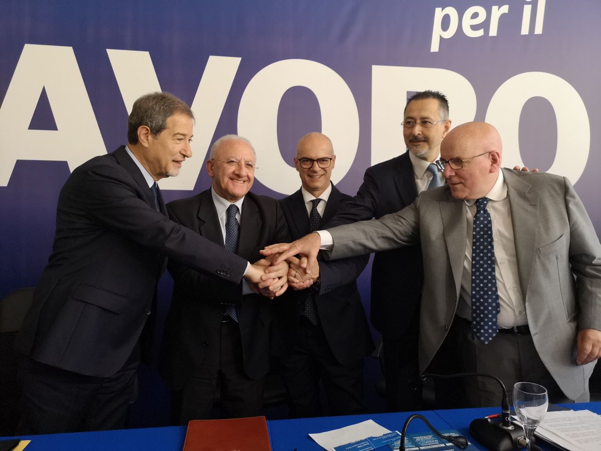 Nelle sale di Villa Pignatelli a Napoli, cinque governatori del Sud, hanno firmato un accordo per la salvaguardia degli interessi economici del Mezzogiorno d’Italia. A presiedere gli Stati Generali del Lavoro è stato il presidente della Regione Campania Vincenzo De Luca, ma, come detto, erano presenti anche altri governatori: Nello Musumeci (Sicilia), Mario Oliverio (Calabria), Marcello Pittella (Basilicata), Donato Toma (Molise) e, in collegamento dalla Puglia, Michele Emiliano.
