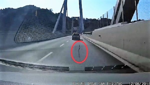 Intanto, altri utenti che hanno visionato e commentato il video spiegano che la crepa, unica nel manto stradale (almeno nel tratto visibile nel video) potrebbe essere in prossimità di uno dei piloni che hanno ceduto. Il video, come detto, è stato consegnato alle forze dell’ordine e solo gli esperti potranno dire se la crepa è collegabile al crollo.