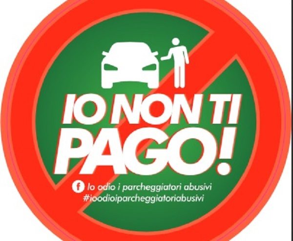 A chi ha firmato la petizione è stato regalato l’adesivo, ideato da Marco Gaudini e realizzato grazie alla collaborazione del grafico Joe Pivello, con la scritta ‘Io non ti pago’ in modo da rendere riconoscibile le auto e le moto di chi si oppone al pizzo dei parcheggiatori abusivi.