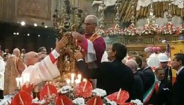 Anche quest’anno San Gennaro c’ha fatto ‘a grazia! Il sangue si è sciolto e il cardinale Crescenzio Sepe ha annunciato il miracolo della liquefazione del sangue.