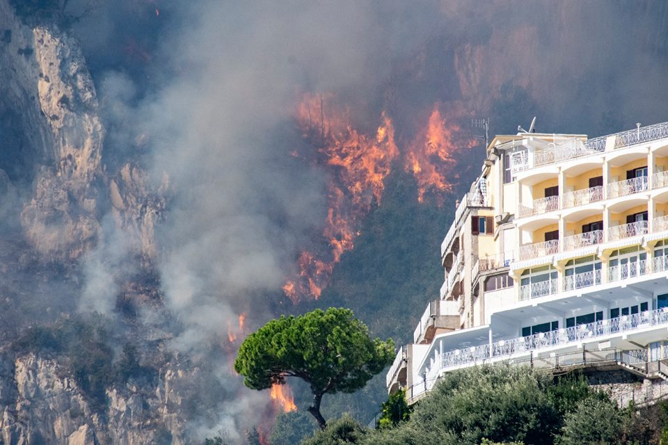 Una nube acre e nera di fumo ha avvolto la cittadina della Costiera e le fiamme stanno scendendo rapidamente verso il centro abitato, a pochi metri da case e strutture. La paura è tanta e la vastità dell’incendio sta prendendo sempre più piede a causa delle forti raffiche di vento che alimentano la portata distruttiva del rogo.