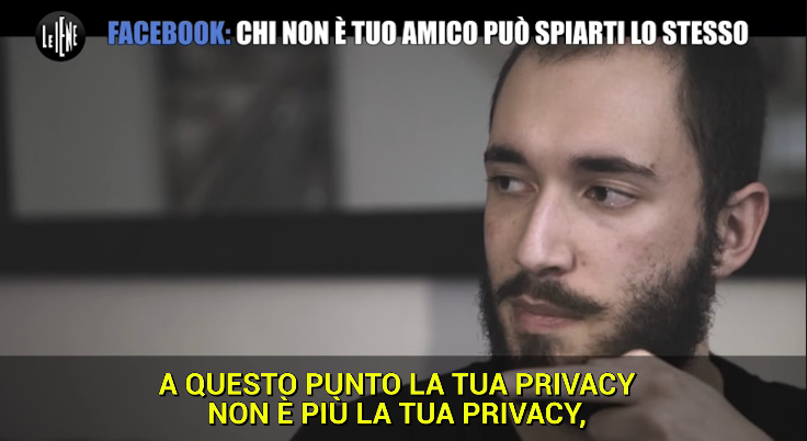 Si possono rintracciare le foto in cui è taggato, i luoghi frequentati, i “mi piace” lasciati e persino i commenti. Nel servizio, Viviani intervista Stefano Fratepietro, un esperto di sicurezza informatica che ha scoperto questa clamorosa falla di Facebook: “Ad oggi manca completamente un’opzione tale per cui un utente decide di non voler comparire neanche nei post degli amici“.
