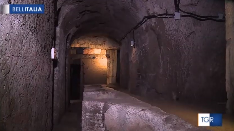 L’edificio fu costruito in epoca borbonica, i suoi cunicoli portano a 25 metri di profondità, fino al teatro. Qui si può ammirare il proscenio, e si può salire sul pulpitum, dal quale osservare il pozzo di Enzechetta, dove ebbe origine lo scavo.